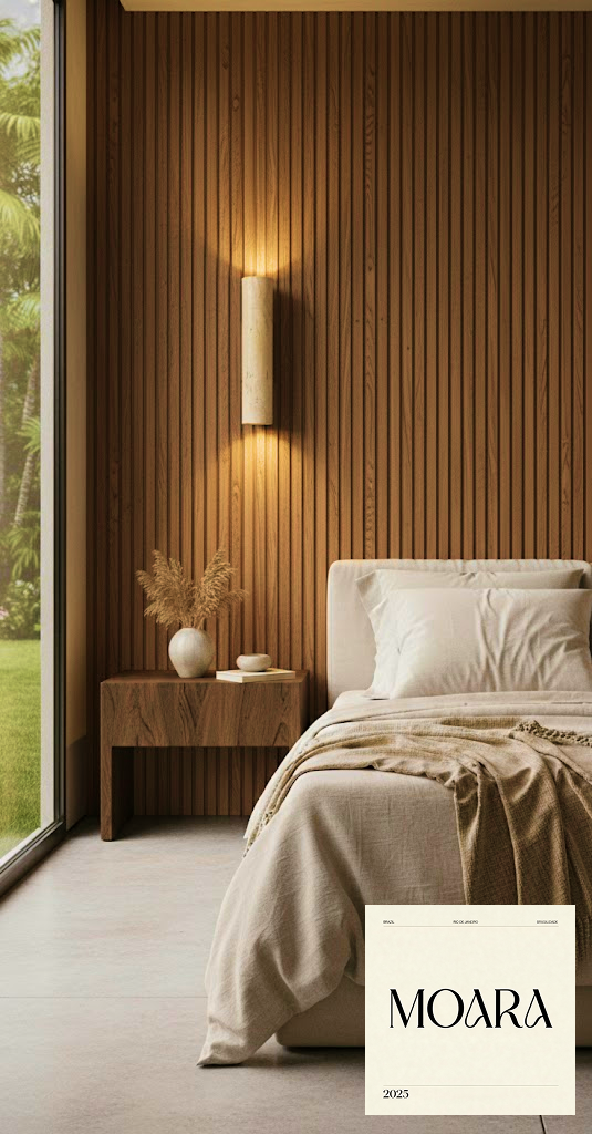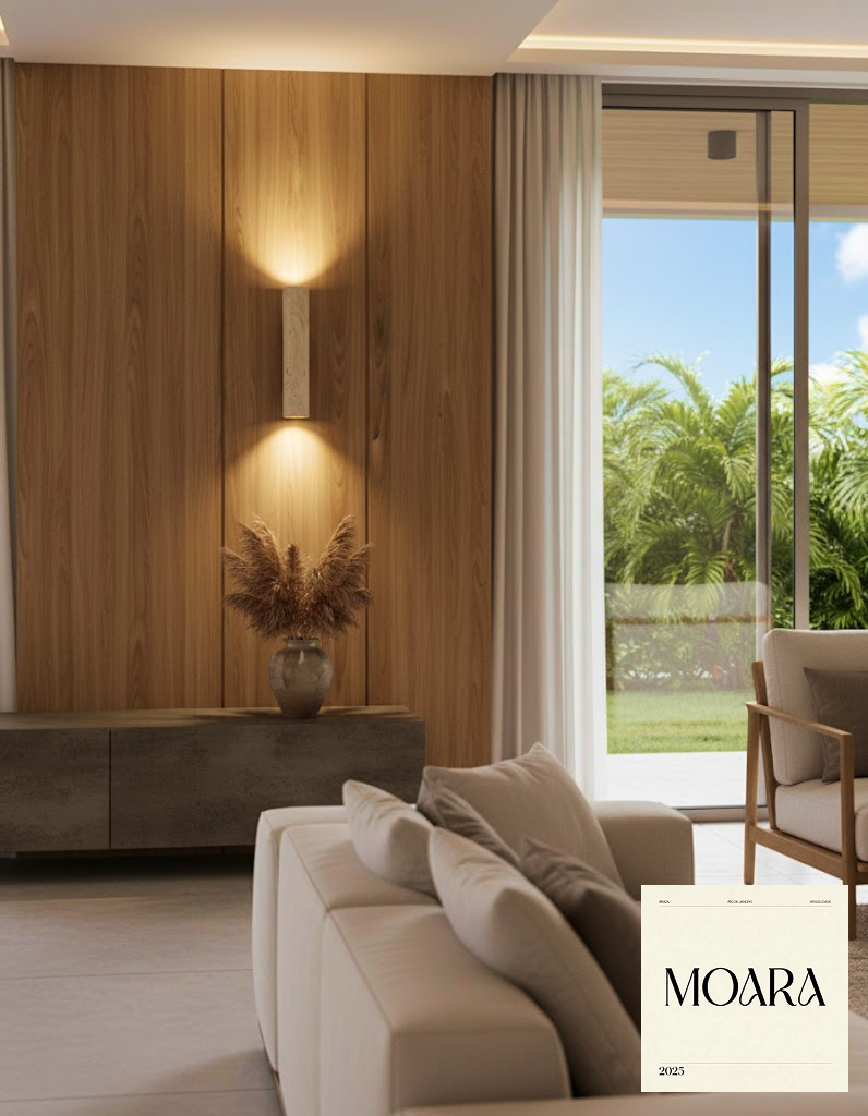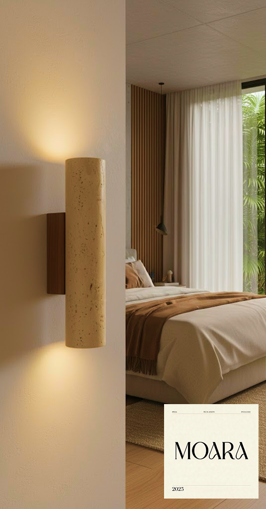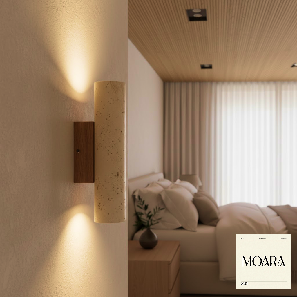Luminária MOARA Rio: Coluna Travertino e Madeira